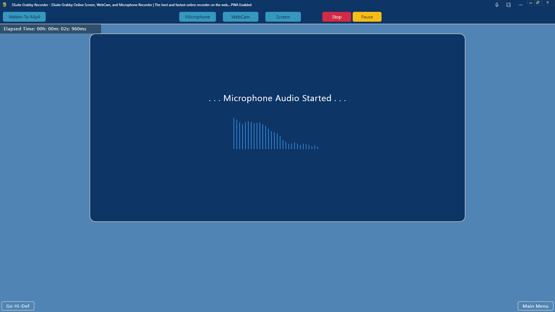 SSuite Grabby is a screen recorder that runs directly inside your web browser using pure HTML5 and javascript code. It utilizes the most efficient audio and video codecs to make web deployment a total breeze and also to make your recordings take up less space on your social media accounts or website. It makes viewing so much faster as it is more compact and faster to render to screen.