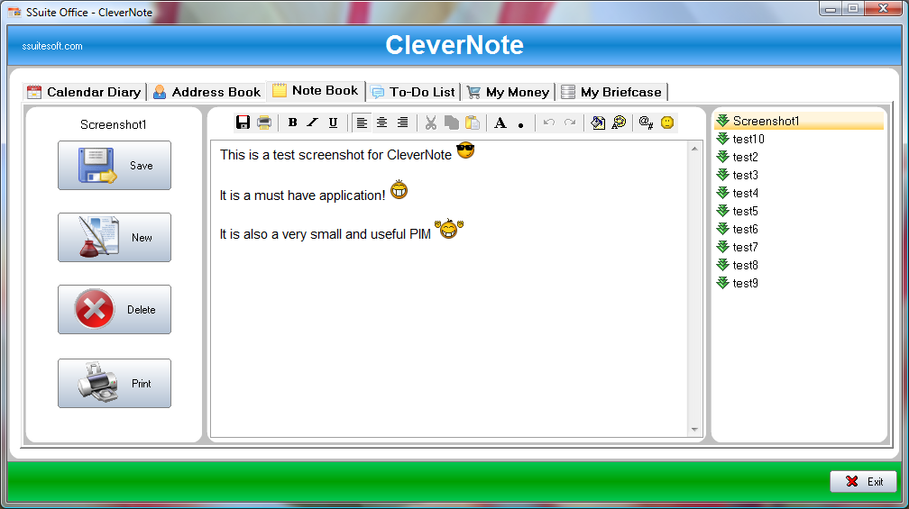 SSuite CleverNote PIM is a comprehensive application that includes an intuitive working environment for managing notes, ideas, lists and events into one place. It comes in handy for personal and business purposes alike.