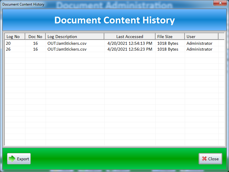 When the administrator logs in, only he can change the passwords, user level access, and add or delete file categories for user access. Only the database administrator has access to the administration settings. Users have access only to the files that have been entered in their access level. All files outside the user's access level, cannot be seen or accessed according to their assigned security level.